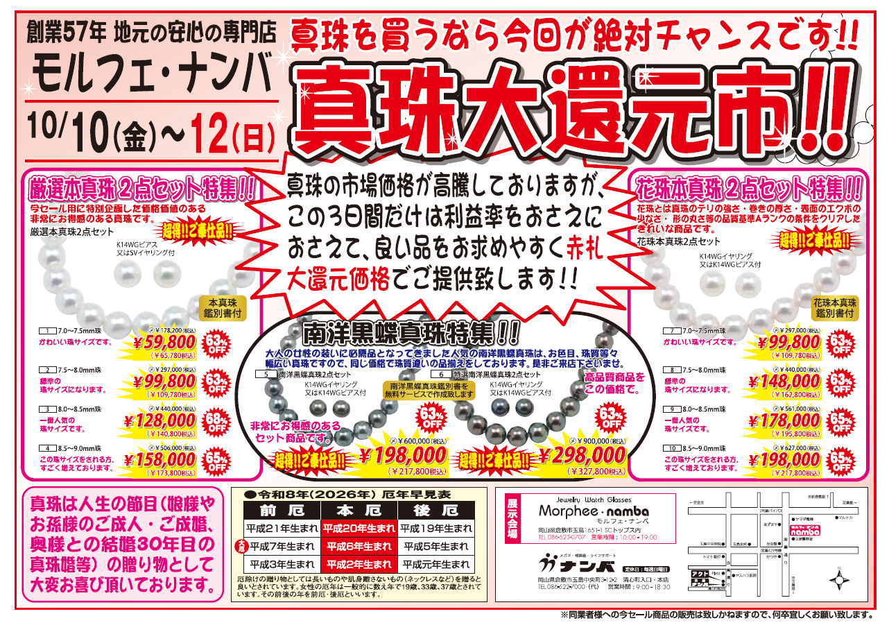 真珠大還元市‼開催のお知らせ 2025年10月10日(金)~12日(日)3日間